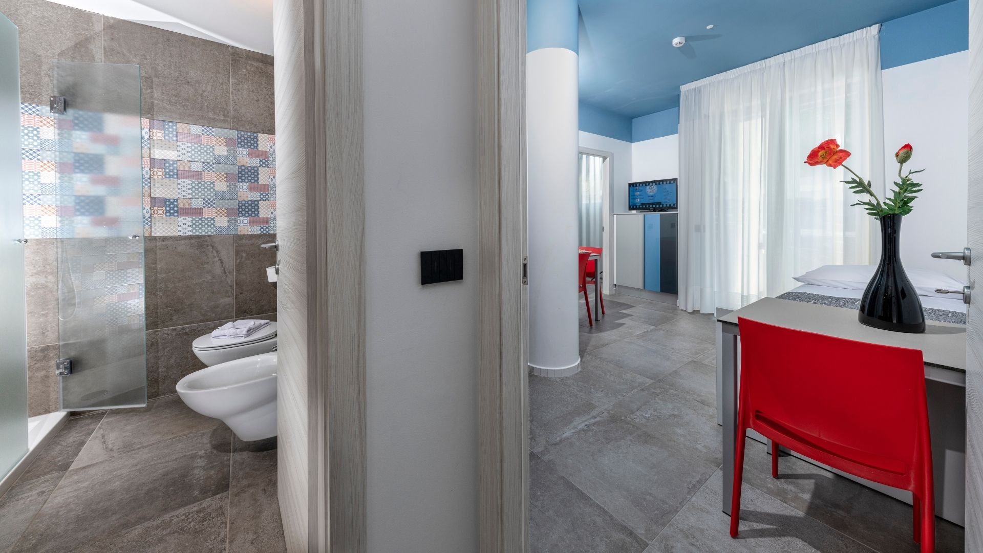 Se cerchi il perfetto equilibrio tra privacy e condivisione, la nostra Suite da 35 m² è la soluzione ideale. Progettata per accogliere comodamente fino a 5 persone, offre ambienti separati per garantire a tutti il giusto relax dopo una giornata di sole a Riccione.