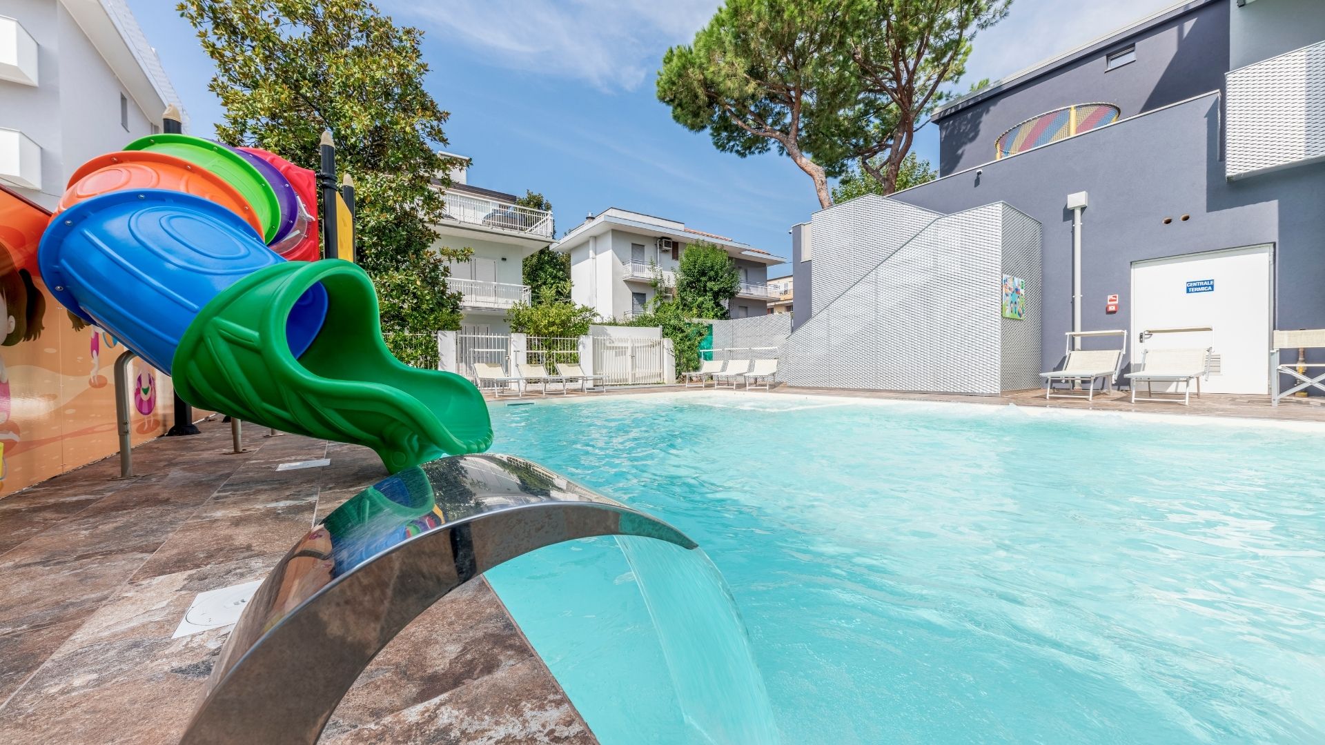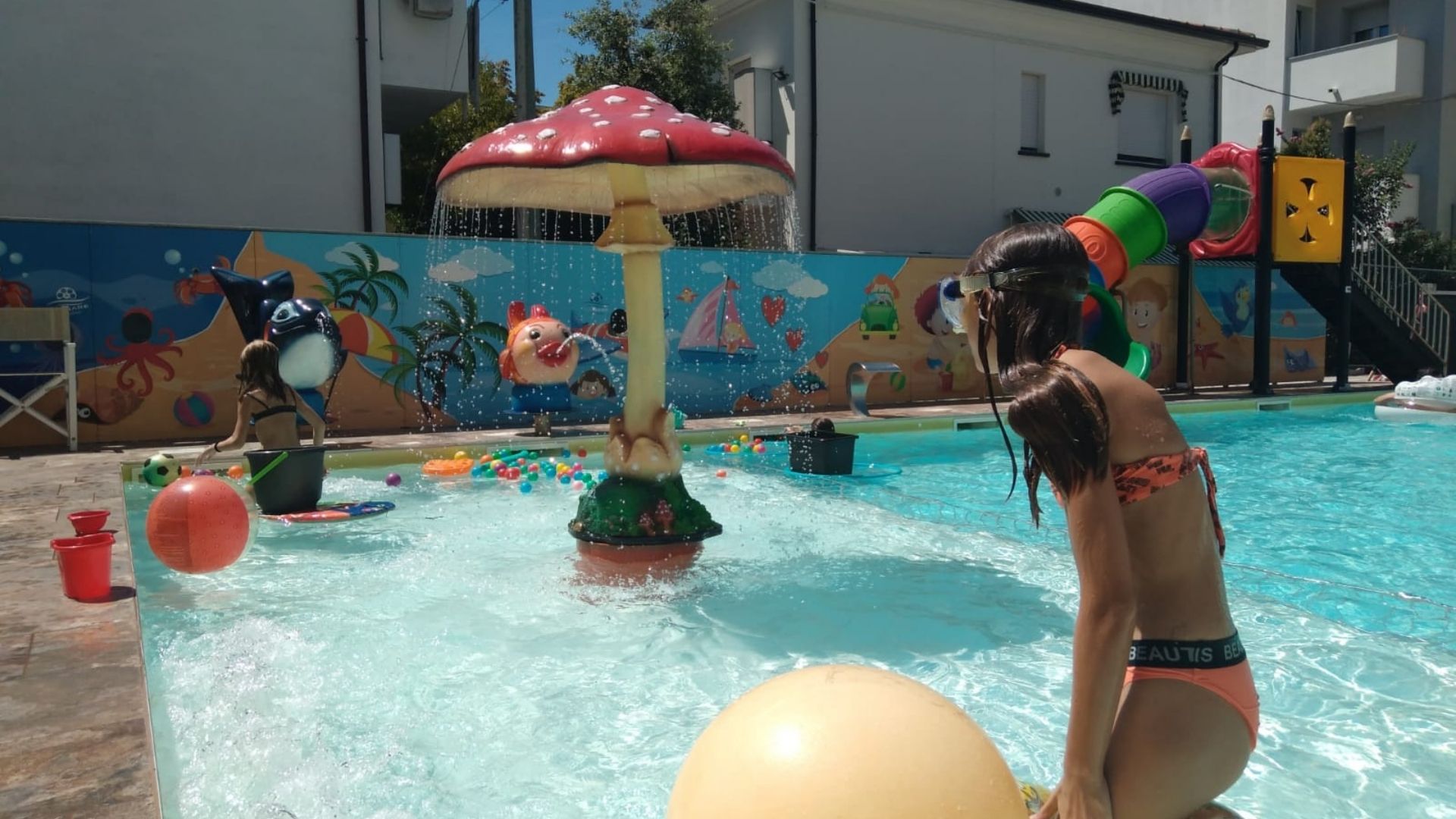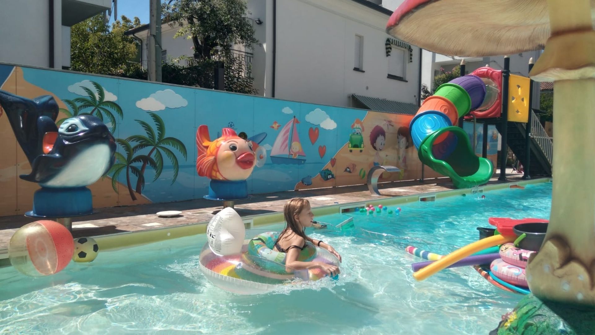 Zona bimbi dedicata: una vasca con acqua bassa dove i piccoli possono giocare in totale sicurezza.